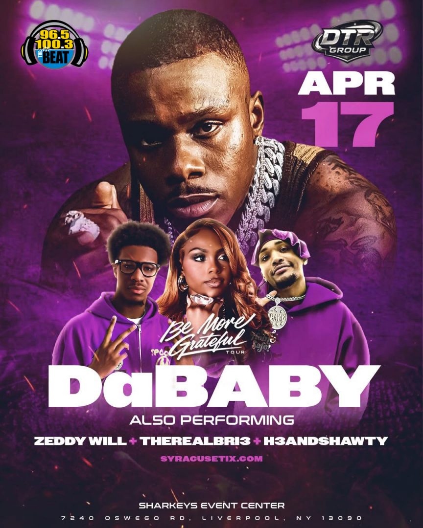 For ticket purchases check out DaBaby – Be More Grateful Tour – Syracuse Tix